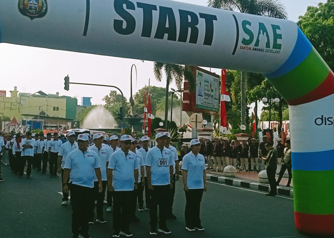 Mengusung nomor dada 01, Mas Ibin memimpin barisan dengan langkah tegap dan penuh semangat, menunjukkan bahwa pemimpin pun siap berada di garis depan untuk menularkan semangat kebangsaan.