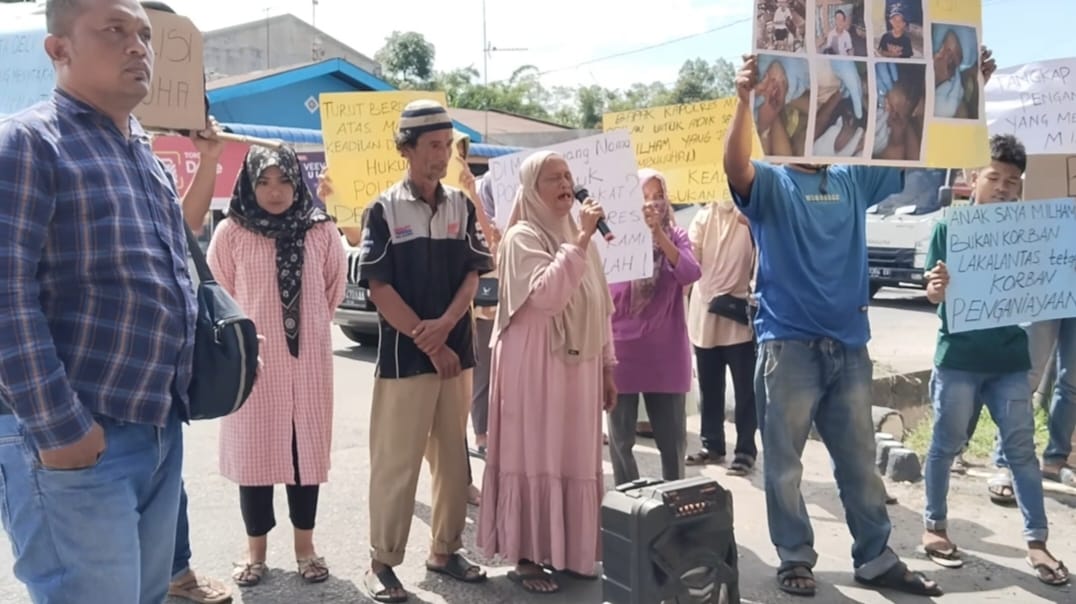 Tuntut Kepastian Kematian Korban MI, Keluarga Demo Mapolresta Deli Serdang