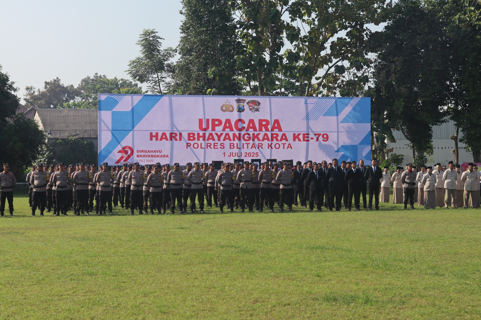 TERITORIAL24.COM, BLITAR — Upacara peringatan Hari Bhayangkara ke-79 di Mapolres Blitar Kota, Selasa pagi, 1 Juli 2025, berlangsung khidmat.
