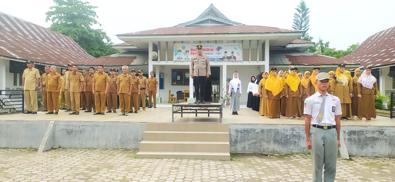 Wakapolsek Rambutan Polres Tebing Tinggi, Iptu Rudianto Sinaga, menjadi pembina upacara bendera di SMK Negeri 2 Kota Tebing Tinggi pada Senin pagi (6/10).