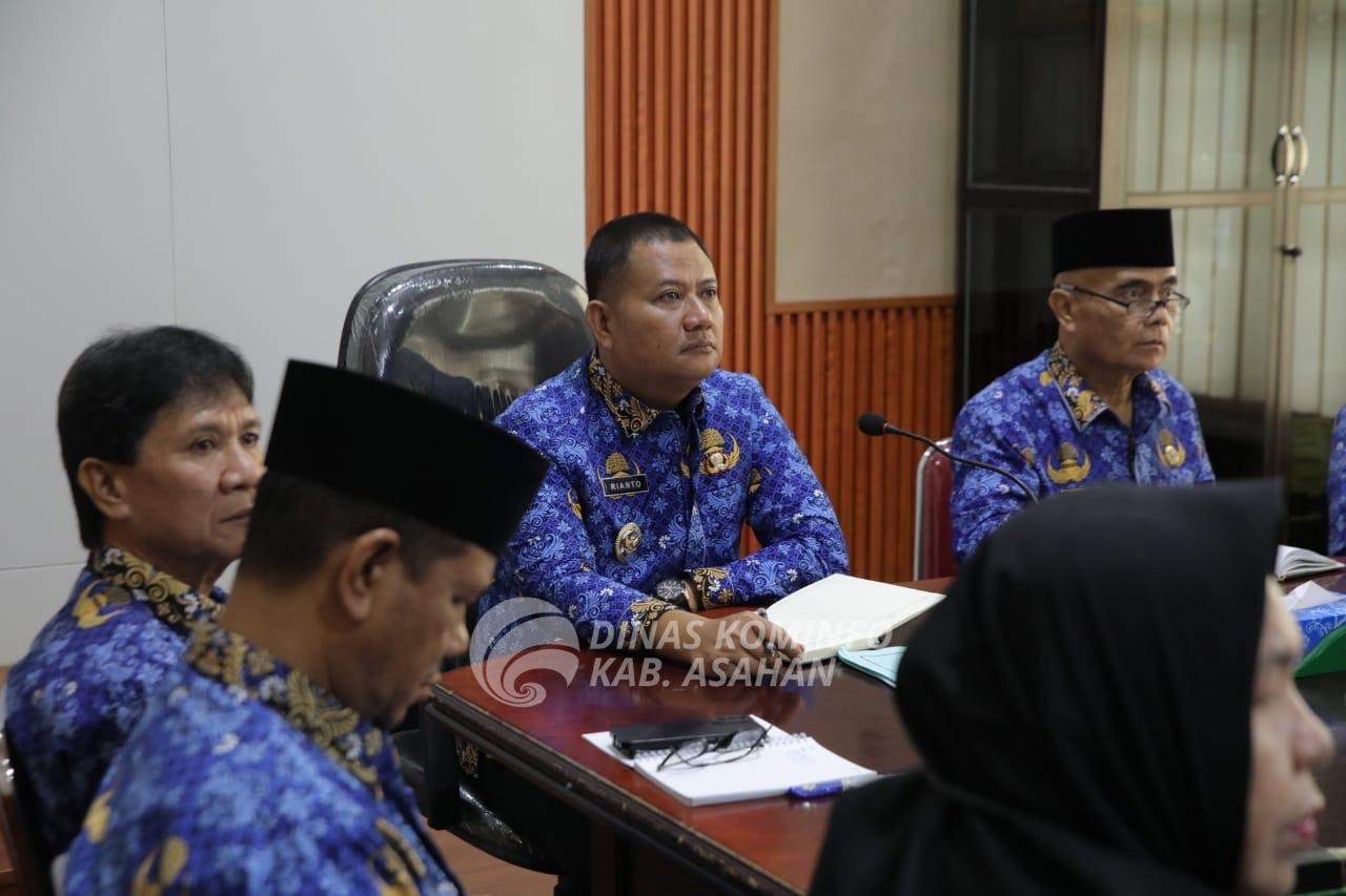 Wakil Bupati Asahan Rianto SH MAP bersama OPD ketika Rakor Pengendalian Inflasi Tahun 2025 secara virtual di Aula Kenaga Kantor Bupati Asahan, Senin (17/03/2025).(gan)