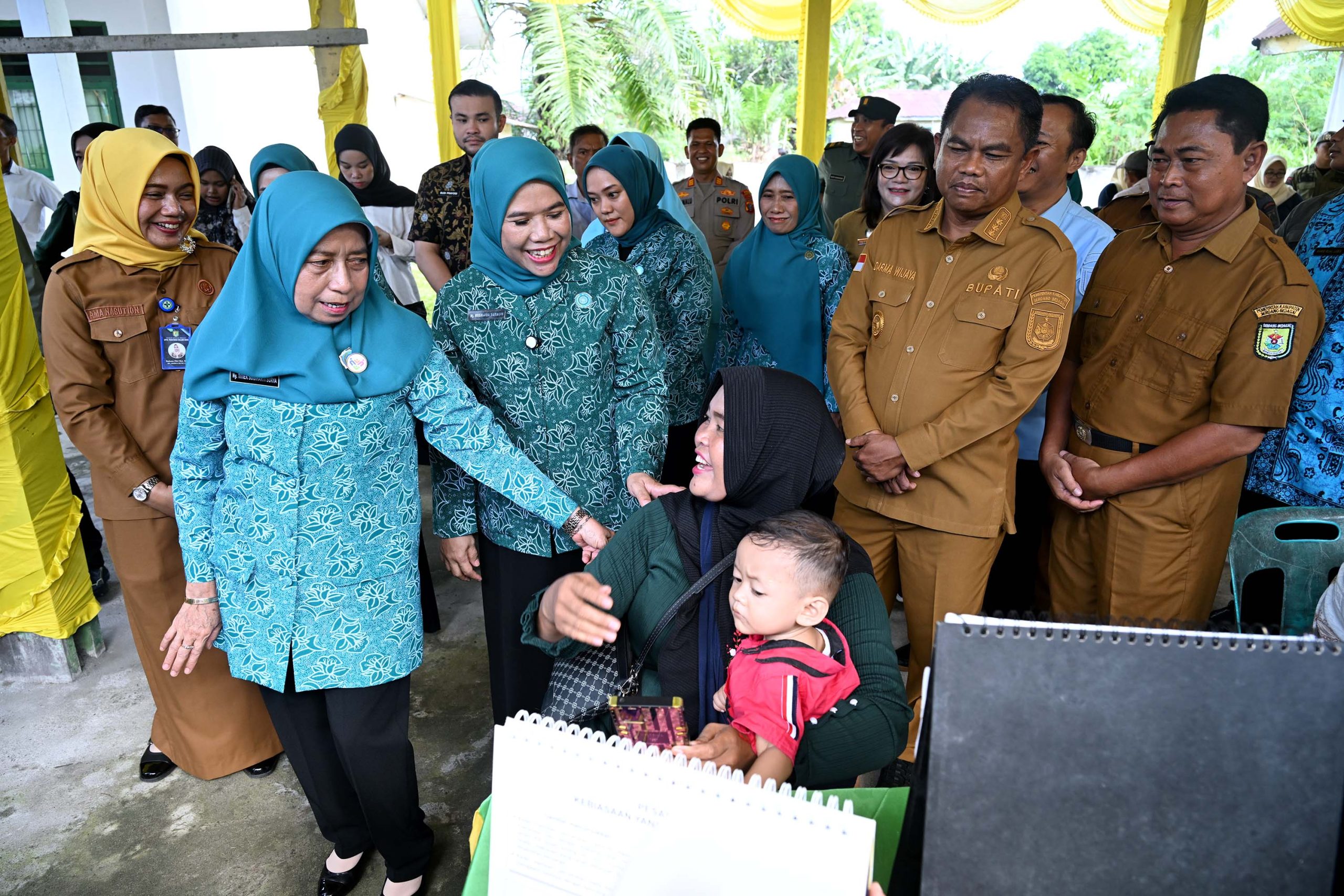 Titiek didampingi Bupati Serdangbedagai, Darma Wijaya, dan Ketua TP PKK Sergai, Rosmaida Saragih, mengunjungi Posyandu Melur I di Desa Seibuluh, Kecamatan Telukmengkudu, serta Posyandu Kemuning di Desa Pasar Baru.