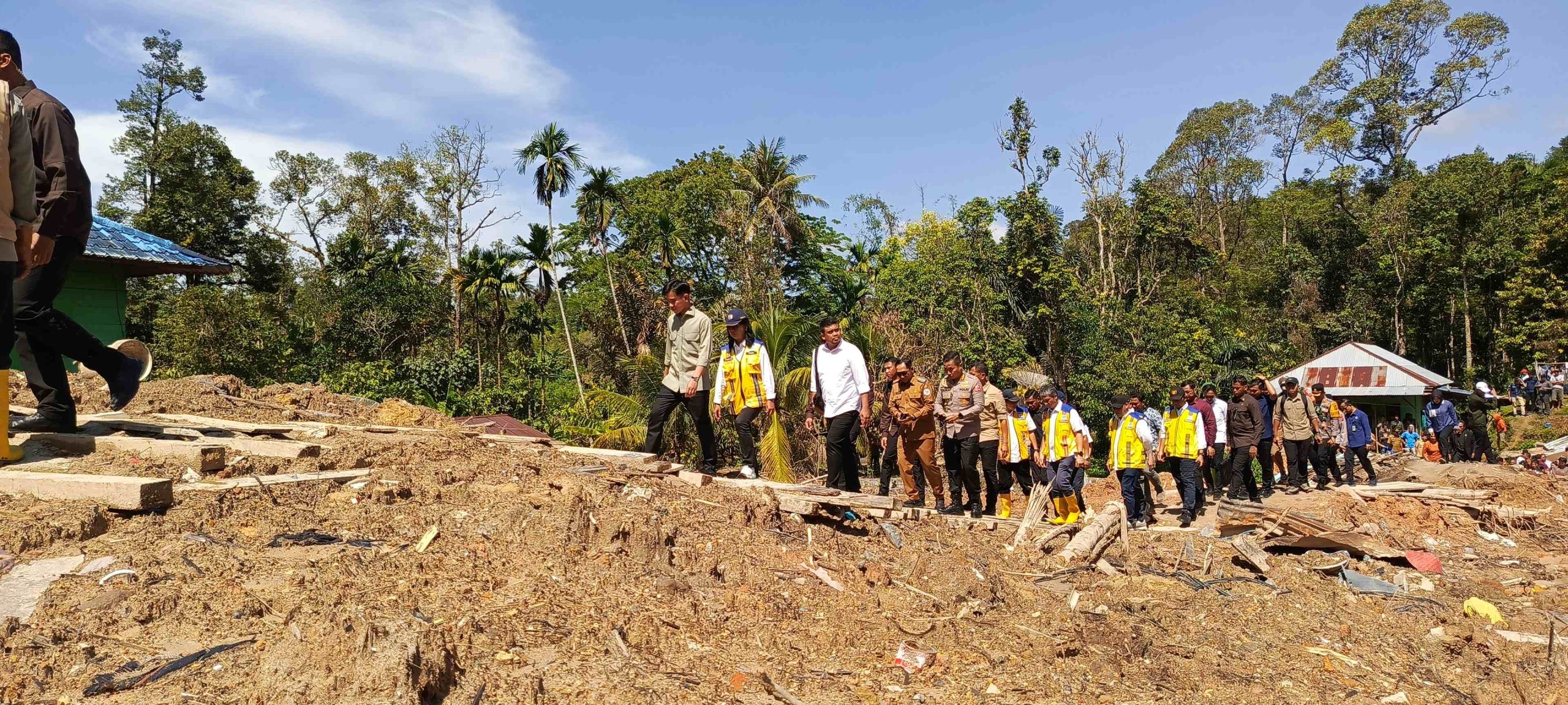 TERITORIAL24.COM, TAPANULI UTARA – Wakil Presiden Gibran Rakabuming Raka bersama Gubernur Sumatera Utara Muhammad Bobby Afif Nasution meninjau lokasi pengungsian korban banjir dan longsor di Desa Sibalanga, Kecamatan Adian Koting, Kabupaten Tapanuli Utara, Senin, 22 Desember 2025. Kunjungan dilakukan untuk memastikan ketersediaan logistik, layanan kesehatan, serta rencana pembangunan hunian tetap bagi warga terdampak.