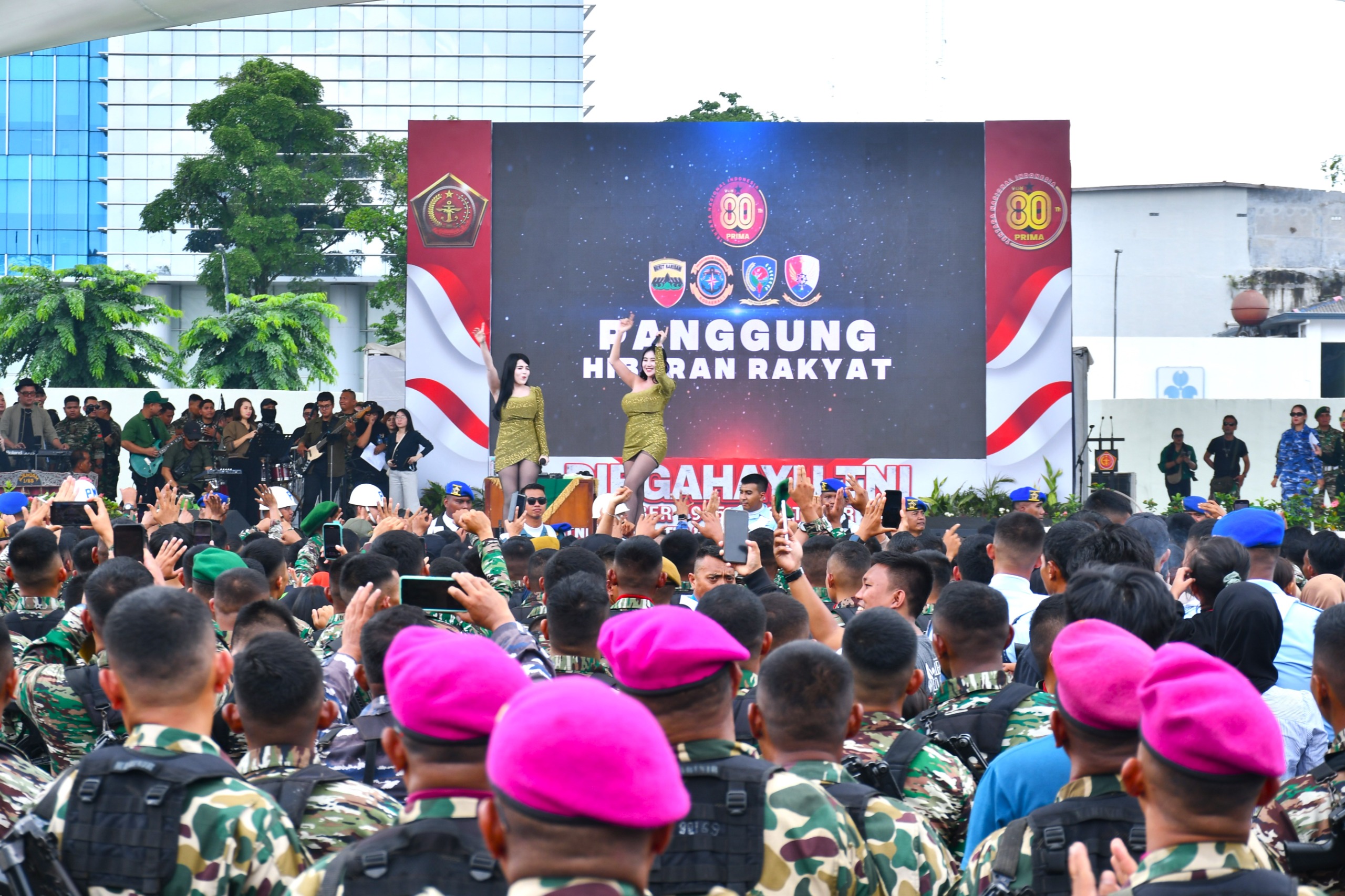 Ribuan masyarakat dan prajurit larut dalam kegembiraan menikmati penampilan artis ibu kota, termasuk Wika Salim dan Duo Serigala.